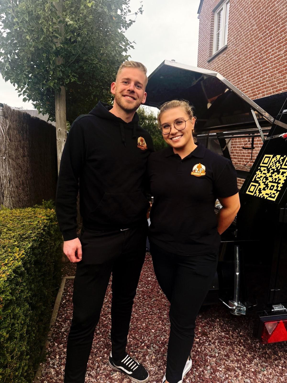 Wij zijn Tuur & Jana, het team achter T’s Flaming BBQ. Wat ooit begon als een passie voor vuur, smaak en gezellig tafelen, groeide uit tot een BBQ-concept dat draait om beleving.
